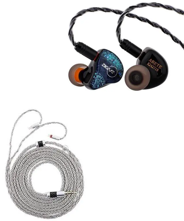 Linsoul ZiiGaat x Fresh Reviews Arete in Ear Monitor, 1DD+4BA Hybrid Earphone IEM (Blue) Tripowin Zonie IEM Cable, 2m Long Earbud Cord, 16 Core Silver Plated Earphone Cable(2Pin)