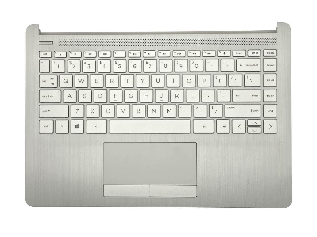 Replacement Upper Case Palmrest for HP 14Z-DK 14-DK 14-CF 14S-CF Series Laptop Touchpad with Keyboard Assembly Top Cover L48648-001 6070B1581701 Natural Silver