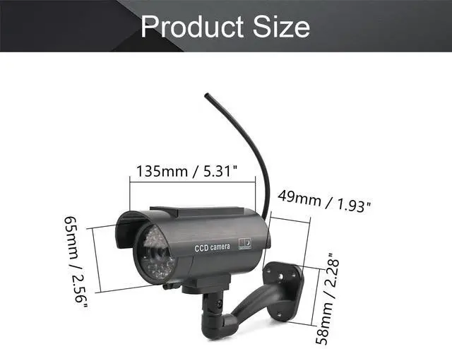 Descriptions: This Professional-Looking Dummy/Fake Security Camera Is Made To Look Like The Real Thing, Which Will Deter Robbery, Theft, And Vandalism Without The High Cost Of A Real Security Camera. When Placed In Your Home Or Business, Even The Most Sophisticated Criminals Will Think The Premise Is Guarded By A High-Tech Surveillance System And Go In Search Of An Easier Target