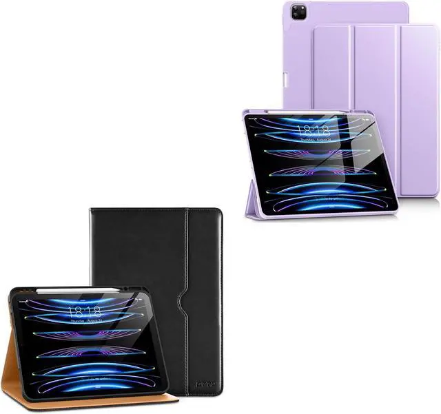 DTTO for iPad Pro 12.9 Inch 6th / 5th / 4th / 3rd Generation Case with Pencil Holder, Premium Leather Folio Stand Cover and Smart Slim Trifold Stand Case, Black/Taro Purple