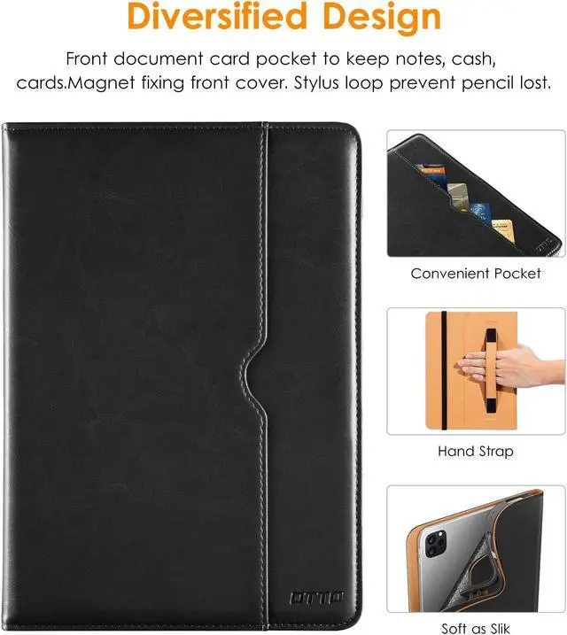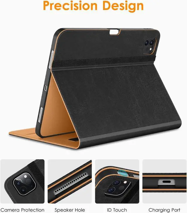 Built-in Pencil Holder - Securely carries and protects your pencil wherever you go. A hole has been designed at the back of the pencil holder that you can easily push pencil out without taking off your iPad Pro 12.9 case.