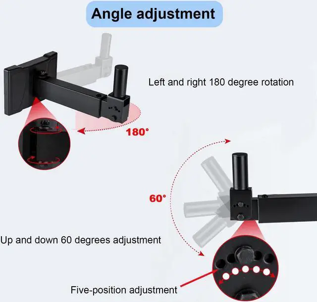 Convenient installation: The speaker mount can be installed on the wall, which can be tilted up and down by 45°, and the level can be adjusted 180°, so that your speakers can get a perfect angle of sound