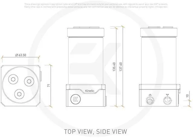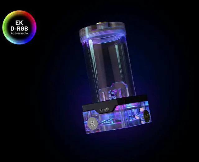 EK-Quantum Kinetic TBE 160 DDC Body D-RGB is the stand-alone pumpless version of the newly released tubular style Kinetic TBE combo units. This means the customer is able to upgrade his old DDC-based combo unit or to utilize any existing previously owned DDC pump. These combo units are equipped with a total of six G1/4 ports so that users can choose the most optimal setup for their liquid cooling loops. The cast acrylic top features three G1/4" ports. One of the ports can be used with the included nickel-plated brass internal tube, which helps prevent the splashing of the coolant inside the reservoir if the top is to be used as an inlet.