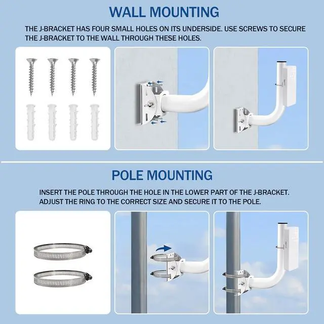Expand outdoor WiFi coverage with our AX1800 Outdoor WiFi 6 Extender & 2 Pack Universal Wireless Bridge Bracket Mount Bundle. The extender boasts ultra-fast WiFi 6 technology for seamless connectivity, all-weather durability for reliability, powerful coverage to eliminate dead zones, flexible Passive PoE installation for convenience, and versatile modes to suit your needs. The mounting brackets offer flexible installation with 150° angle adjustability for optimal signal positioning, rock-solid stability to keep your setup secure, and all-weather durability to match the extender. Together, they provide a robust solution for outdoor WiFi needs, allowing you to enjoy reliable, high-speed connectivity throughout your outdoor spaces.