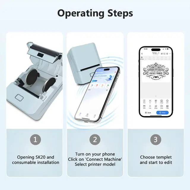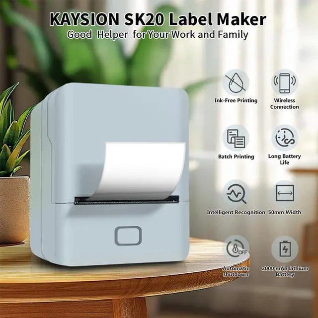 Mini Label Maker Prints:SK20 small label printer is lightweight at 212g. easy to carry, and pocket-sized. Its eco-friendly, mess-free, and needs no ink cartridgesComplete for hassle-free printing!