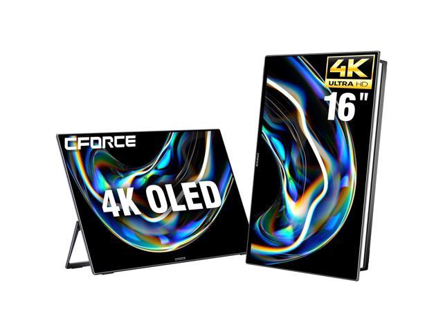 - 16" 4K Portable Monitor The CFORCE 16" external portable monitor employs OLED display technology (capable of displaying pure black), boasts a 100% DCI-P3 color gamut, top-tier contrast (100,000:1), an unlimited color range (1.06 billion colors), and a 4K (3840x2400P) Ultra-HD resolution, along with a wide 178° viewing angle. All these features provide you with richer colors and more realistic picture quality, especially in high-brightness images. It effectively reduces blue light emission harm, is flicker-free, and eye-care, making it easier for you to watch for extended periods.
