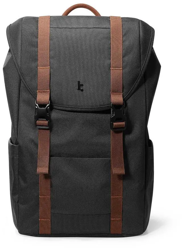 tomtoc Flap Laptop Backpack, Lightweight, Water-Resistant Casual Daypack, Durable Work-pack, Vintage Classic Rucksack for 13- 15.6 Inch Laptop, perfect for Campus, Street, 22L Black