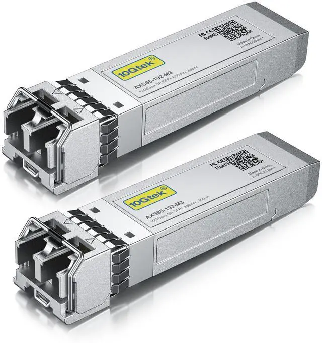 You can get 2 pack of 10GBase-SR SFP+ Transceiver and 1 pack of Fiber Patch Cable for 1M.