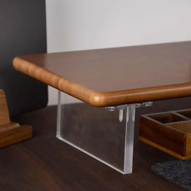 Sleek Bamboo + Acrylic Design: The mix of natural bamboo and clear acrylic creates a clean, floating look that adds elegance and visual lightness to any workspace.