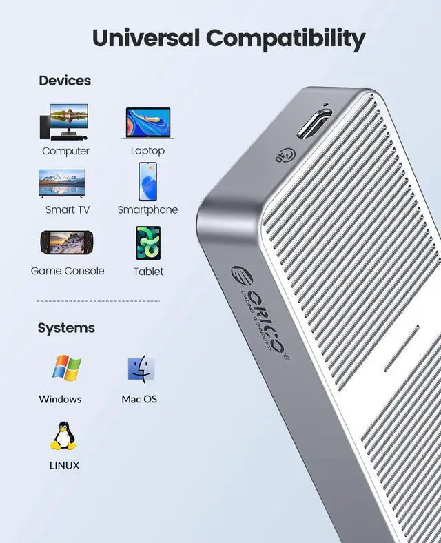 Compatibility: ORICO M224 nvme case compatible with Thunderbolt 3/4 USB3.2/3.1/3.0/Type C interface. M.2 form factor is compatible with M.2 PCIe NVME M key, NVMe B+M key, size: 2280. Not compatible with M.