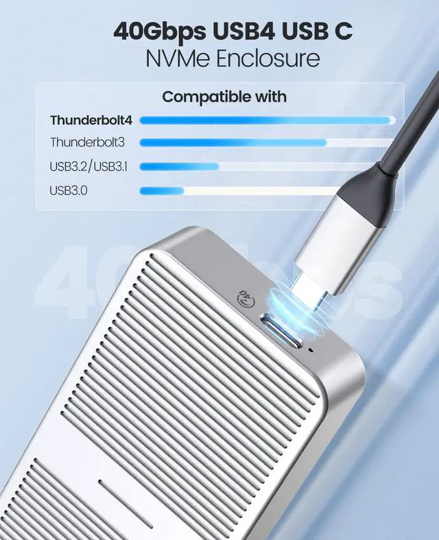 Speed: 40Gbps nvme enclosure supports data transfer speeds up to 40Gbps for stable and efficient transfers. Tested by the ORICO laboratory, the continuous read and write speed can reach 3000MB/s after the nvme ssd is installed.The perfect solution for data storage and backup. (Be sure to use the USB4.0 interface or Thunderbolt3 interface to reach 40Gbps. Backward compatibility will limit the corresponding speed according to different interfaces.)