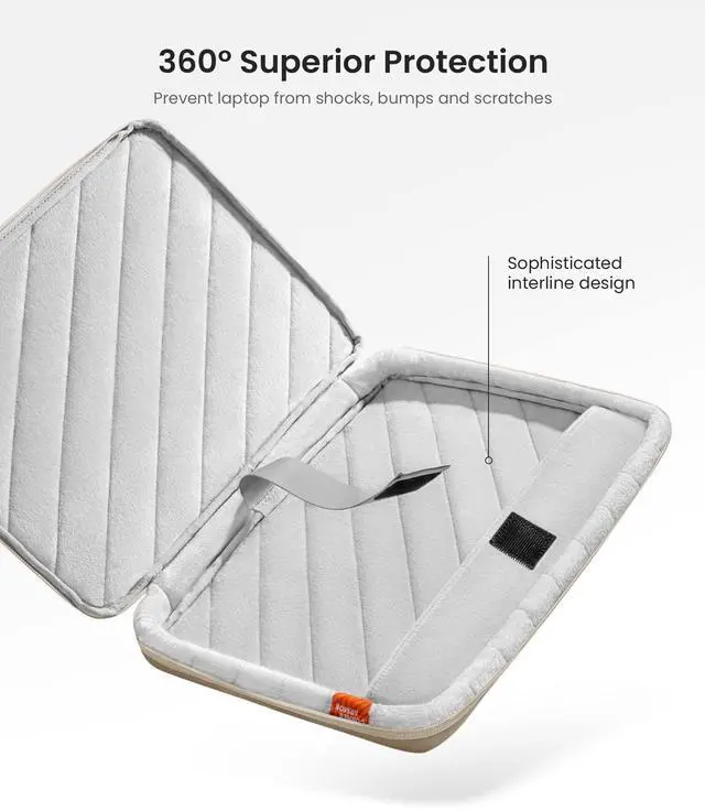 Convenient Clamshell Opening with Safety Design: The full zip-around access laptop bag makes it easy to packability. To keep your laptop snug and secure inside and protect your laptop from unexpected drops due to forgetting to close the zipper, the laptop case is equipped with a dual protection structure - a secure belt and an innovative protective flap cover