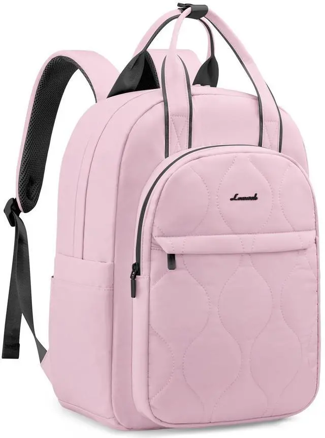 LOVEVOOK Laptop Backpack for Women, College Travel Backpack Puffer Womens Backpack for 17.3 Inch Laptop, Water-Resistant Quilted Casual Daypack, Pink