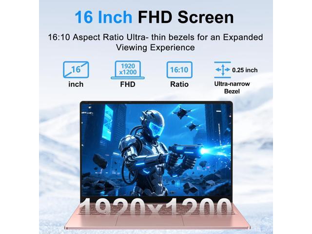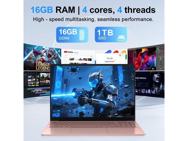 CHIFUYOU Gaming Laptop, 2025 16 Inch Laptop Computer, N150 Processor (4C/4T, Up to 3.6GHz),16GB RAM 1TB SSD, WiFi 5,BT4.2,16" FHD 1920x1200(16:10), Backlit Keyboard, Rose Gold