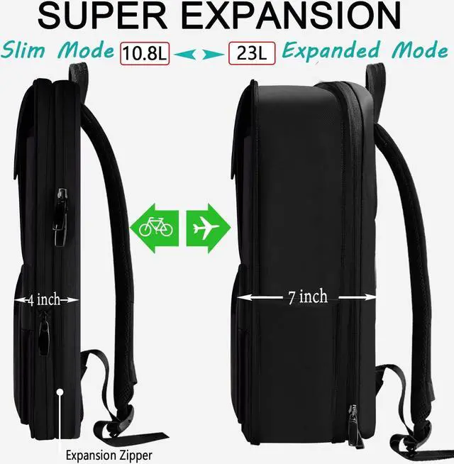 Material and Features: Made of premium synthetic leather and polyester cloth that are waterproof and durable. The travel laptop backpack has a variable capacity for more flexible loading. It can easily transform between daily commute and business trip modes. The slim design is perfect for cycling to the office, while the expanded backpack with a large capacity is ideal for camping and day trips