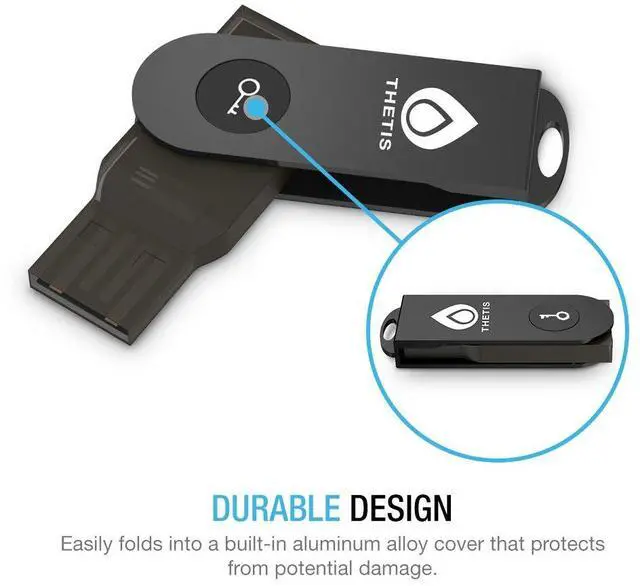Thetis FIDO U2F Security key with aluminum folding design provide a strong authentication to login account in addition to password via the USB port.