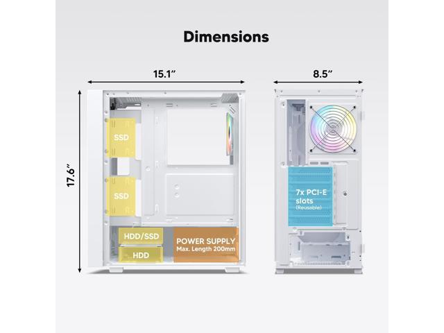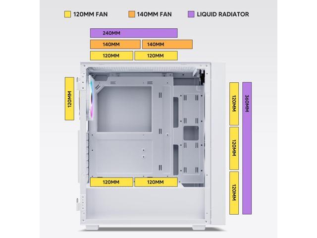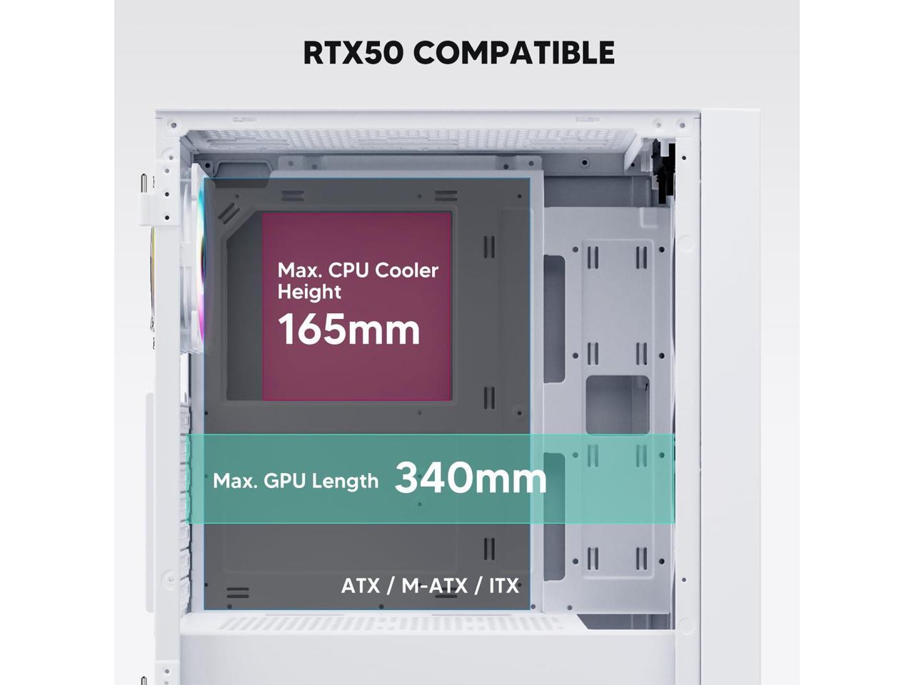 - Wide Compatibility: Support up to 360 mm liquid cooling radiator in front and 8 x 120 mm fan. Support ATX, M-ATX, ITX motherboard, max GPU length 340 mm and fits RTX 50 series graphics cards