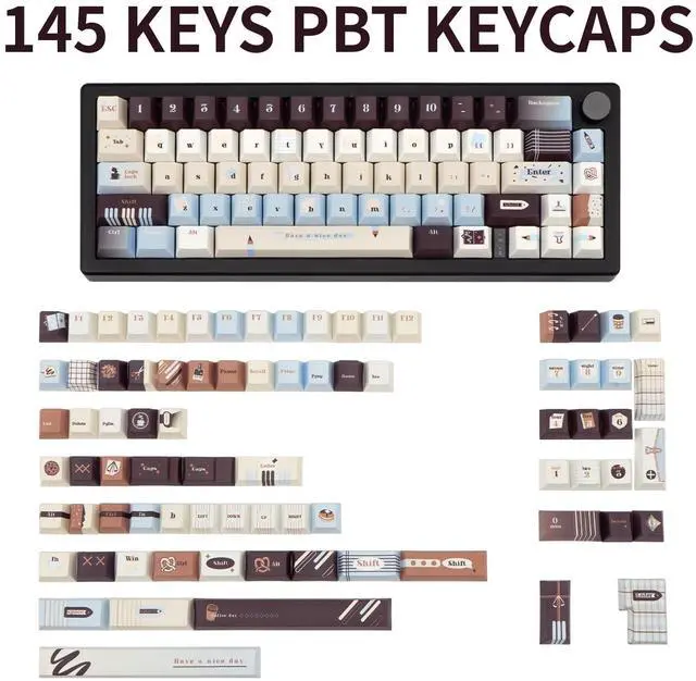 Full-Size Compatibility: 145 keys support ANSI US/UK layouts (61/64/68/75/84/87/96/98/100/104/108 keys), ideal for both standard and custom mechanical keyboards