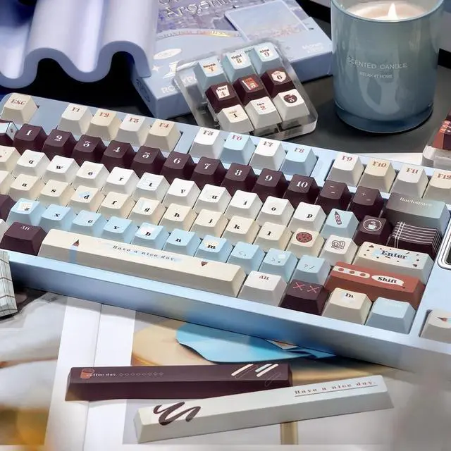Vintage Aesthetic: Soft blue, brown, and cream keycaps hues create a minimalist retro vibe, paired with a keycap puller for effortless customization of your keyboards look