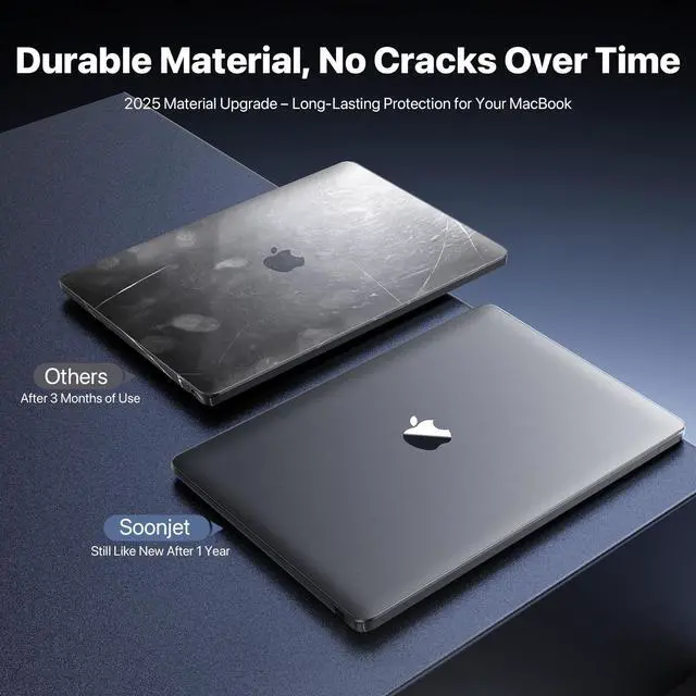 Premium Material, Built to Last: Due to the multidirectional stress and stress-concentration at the corners, cheap cases on the market often crack spontaneously within 1-2 months. To address this common issue, soonjet has upgraded to a composite PC material with 200% enhanced hardness, providing long-lasting scratch resistance and slim protection