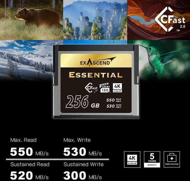 Exascends CFast cards combine our enterprise storage expertise with in-house technologies designed to maximize the performance of your camera system. The result is a competent lineup of CFast cards ready to take on any challenge in professional photography and cinematography.