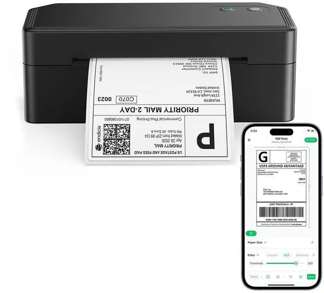 Fast & Clear Printing: This shipping label printer delivers high-speed printing at up to 180mm/s, capable of printing up to 72 4x6 shipping labels per minute. With direct thermal technology, it saves time and eliminates the need for ink or toner