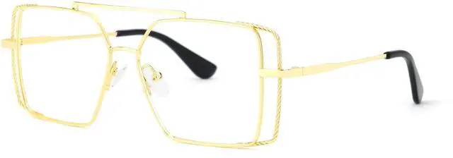 VOOGLAM Square Non Prescription Blue Light & UV400 Blocking Eyestrain Eyewear for Women in Square Gold metal Candace