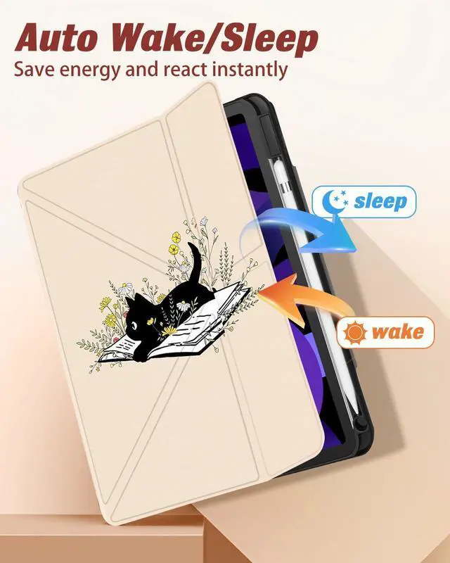 Miss Adola for iPad Air 11 Inch M3 2025 & M2 2024/Air 5th/4th Generation 10.9 Inch/Pro 11 Inch Case - with Pen Holder for Girls Boys Women Men Cute Cartoon Cool Anime Kawaii Fun, Book Cat