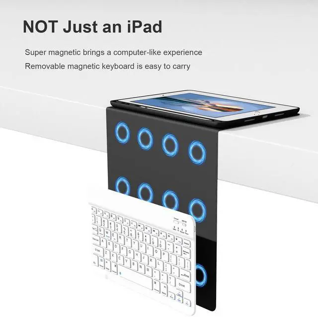 Support 3 System&Full Shortcut Keys- The magnetic wireless keyboard can be removed from the case freely. Compatible with iOS, Android, Windows. Just press Fn and corresponding keys(QWE) to change the keyboard system. Hot keys Customized for iPads, Full Shortcut Keys give you a more efficient way to use your keyboard.