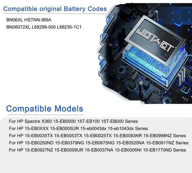 JOTACT BN06XL Battery Replacement for HP Spectre X360 15T-EB000 15-EB000 15t-eb100 15-EB0XXX 15-EB0025TX 15-EB0035TX 15-EB0053TX 15-eb1043dx 15-eb0043dx BN06072XL L68235-1C1 TPN-Q226 L68299-005 72.9W h