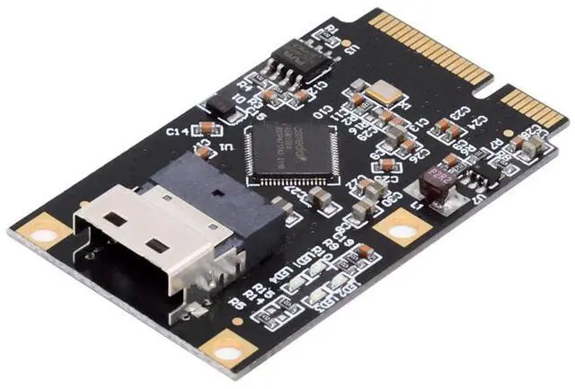 Slimline SFF-8654 can convert four SATA3.0 interfaces, which can be connected to an SSD solid state hard disk as a system disk, and supports transmission rates of 6.0Gbps, 3.0Gbps, 1.5Gbps.The slimline to 4 SATA not include.