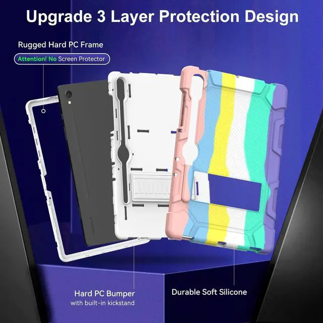 Shockproof Protection: Case for galaxy tab S9 fe case features 3-layer military grade shock-absorbing protective construction, provides full protection for your new