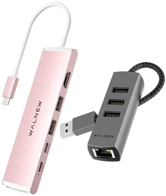 WALNEW 7-in-1 USB C Hub& 4-in-1 USB 3.0 Ethernet Hub Bundle