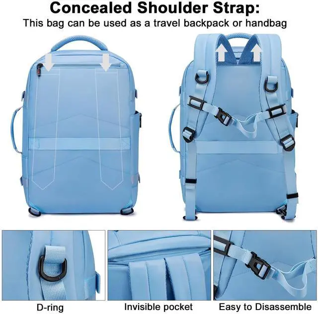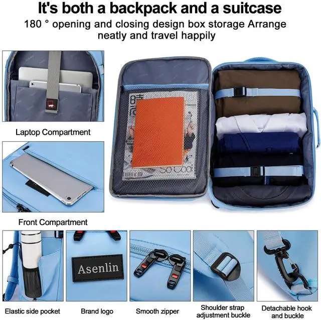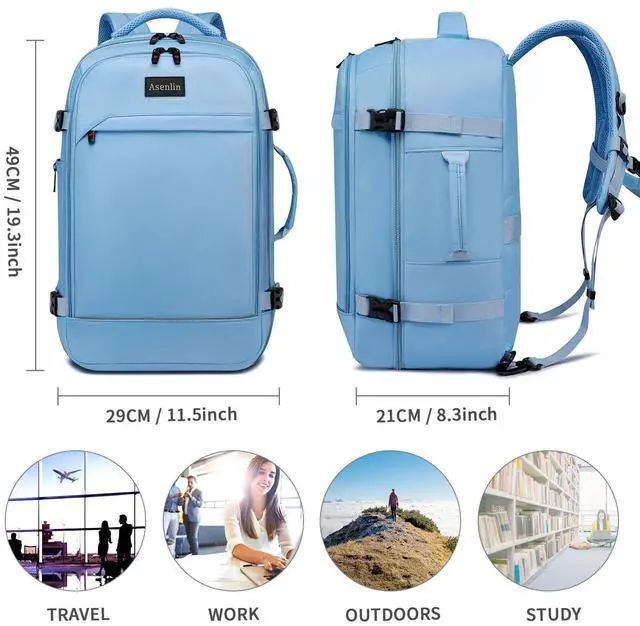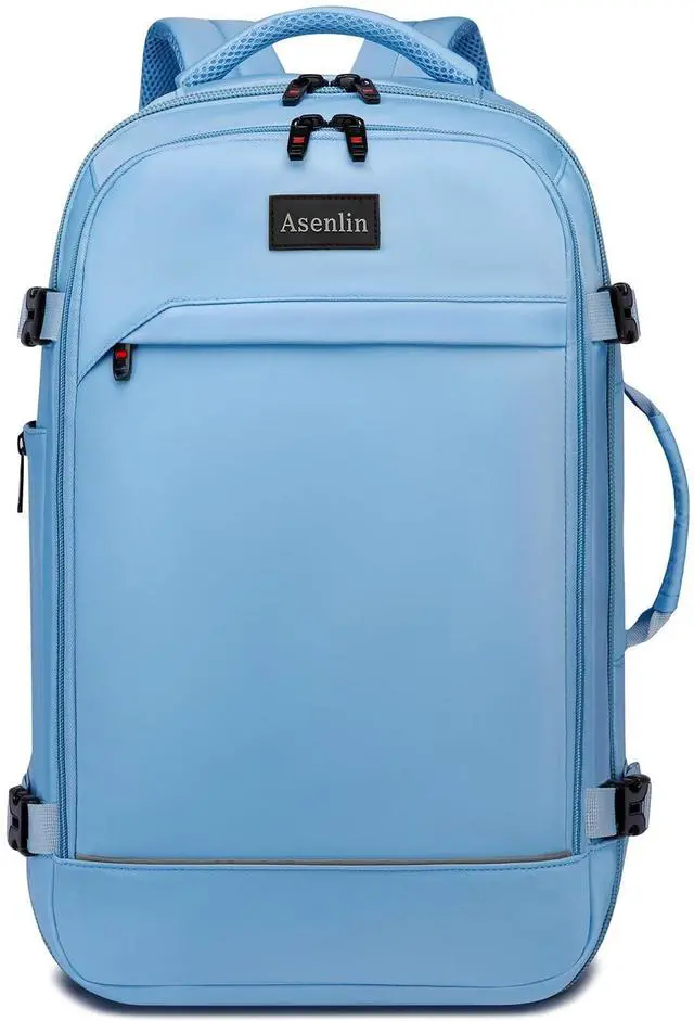 Asenlin 40L Travel Backpack for Women Men, Fit 17.3 Inch Laptop Backpack Flight Approved Luggage Carry On Water Resistant for Weekender Overnight Large Daypack Light Blue