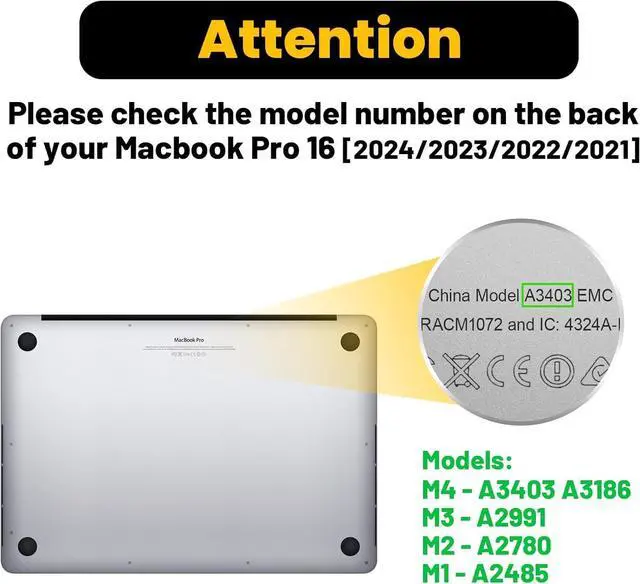 [Compatibility] - This leather case is designed solely for compatibility with the macbook pro 16 inch case in 2021- 2024 model: A3403 A3186 A2991 A2780 A2485. Featuring a Liquid Retina XDR Display and Touch ID. Before you make a purchase, please carefully check the model number "Axxxx" on the back of your laptop