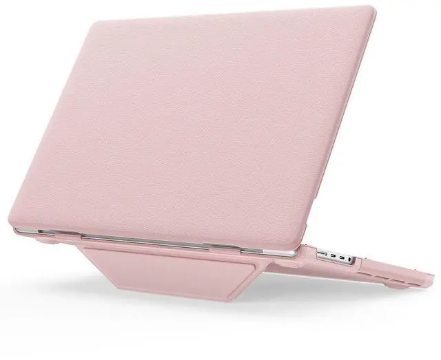 Compatible with MacBook Pro 16 inch Case 2025 2024-2021, Foldable Stand, Anti-Fingerprint PU Leather Protective Hard Shell Cover for M4 M3 M2 M1 Pro Max A3403 A3186 A2991 A2780 A2485, Pink