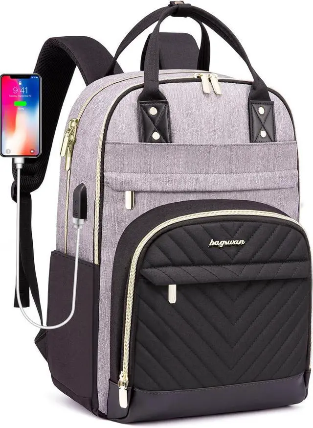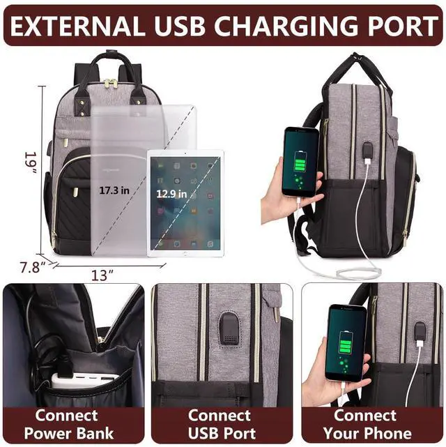 Laptop Backpack for Women Work Bag: College Backpacks 17.3 Inch with USB Charger School Book Bag Travel Computer Back Pack Casual Bookbags for Girls Teacher Black Grey