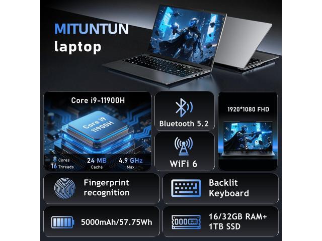 MITUNTUN Gaming Laptop Computer, 15.6 Inch Lap Top PC Win 11 Pro 2025i9-11900H Processor(up to 4.9Ghz), 16GB RAM 1TB SSD, 1920 * 1080 IPS Display, Backlit Keyboard, 5000mAh Battery, WiFi 6, BT5.2