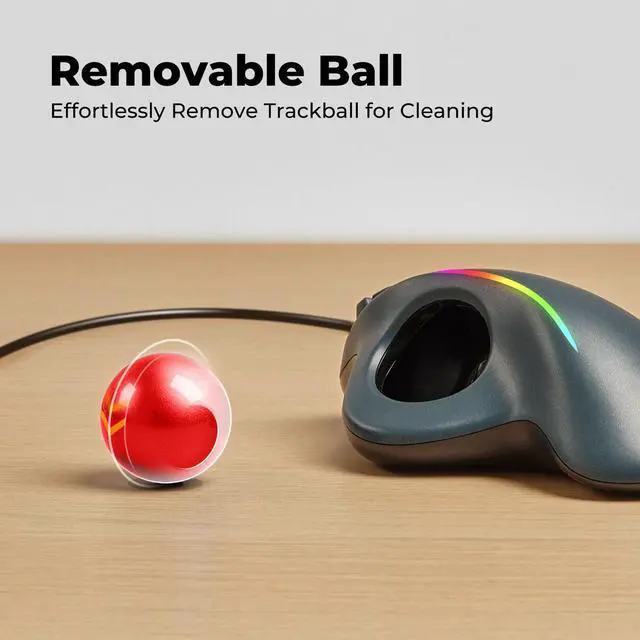 PORLEI Wired Trackball Mouse with RGB Lighting, Ergonomic Thumb Control to Reduce Muscle Strain, 5 Adjustable DPI, Dual USB-C & USB-A Connectivity, Compatible with PC, Laptop, Mac, Windows-Red