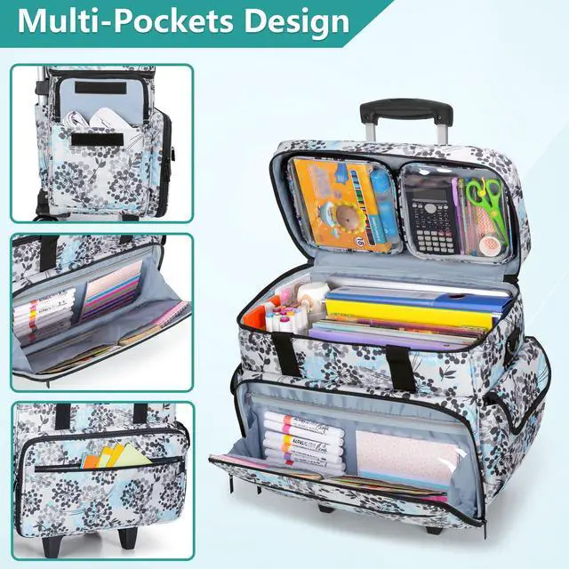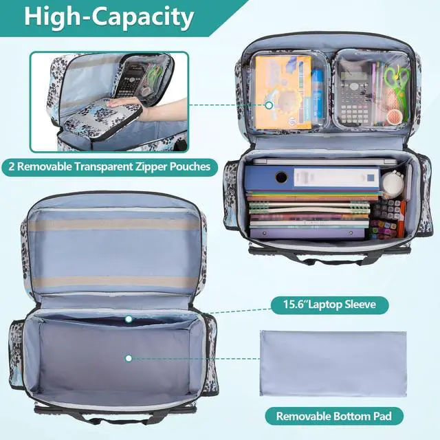 MULTIPLE POCKETS: Teamoy rolling teacher laptop bag has 2 removable transparent zipper pouches for small supplies, a sleeve for your 15.6" laptop, 1 wide open main compartment is large enough to keep books, notebooks, files and other supplies. Outer section have 2 front pockets and 2 side pockets for pens, sticky notes, power bank.