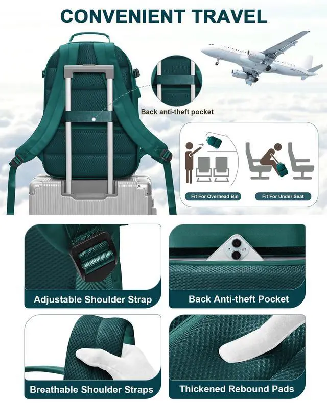 Versatile Multi-Pocket StorageThe spacious main compartment easily fits 16-18 folded T-shirts as well as larger vacuum-compressed items. Multiple functional pocketsincluding dedicated wet and dry compartmentshold essentials like a water bottle, umbrella, phone, and toiletries. A hidden zippered pocket on the back securely stores your wallet, passport, and valuables to prevent theft.