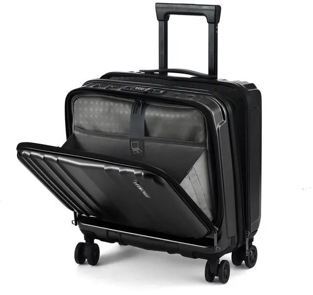 TydeCkare 16" Carry on Luggage with 2 Laptop Compartments, Lightweight Hardshell ABS+PC Suitcase with Dual Control TSA Lock, with YKK Zipper, 4 Spinner Silent Wheels, for Business Travel, Black