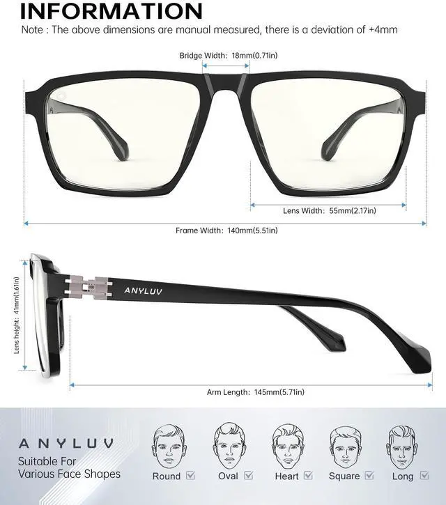 Efficient Blue Light Block: ANYLUV blue light glasses can block up most harmful rays between 380nm-500nm. Alleviating eye fatigue, suitable for wearing both during the day and night, ideal for wearing while playing computer games.
