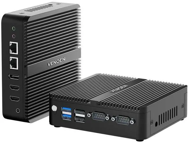 VENOEN Fanless Mini PC Win 11Pro, Industrial PC Celeron J6412, 8GB DDR4 256GB SSD, Dual HD, DP, 3-Display, 2* RS232 COM, 2* RJ45 LAN/WiFi/BT 4.2, Mini Computer for Business/Office/Home