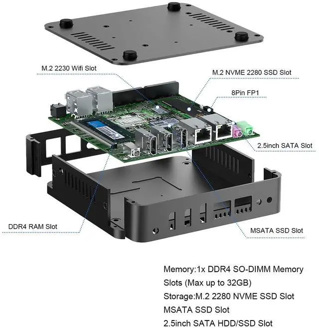 12th gen Celeron J6412 and Win 11Pro: Fanless Industrial PC Equipped with Celeron J6412 ( 4 Cores 4 Threads, 2.0GHz up to 2.6GHz), pre-installed Win 11Pro (support Win 10 / Linux / Ubuntu ect). This server PC is widely used in cash registers, kiosks, billboards, online education, home theater, Business office etc. It also supports for TPM 2.0, Auto power on, Wake on Lan, PXE, Watch Dog.
