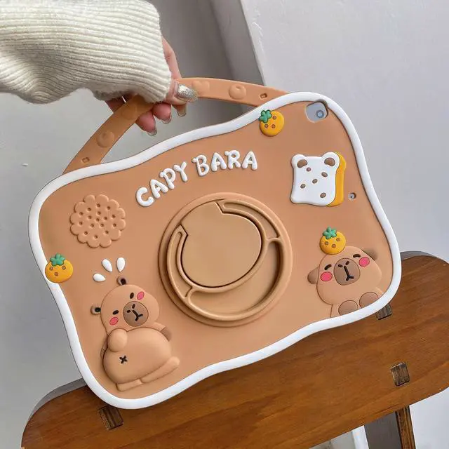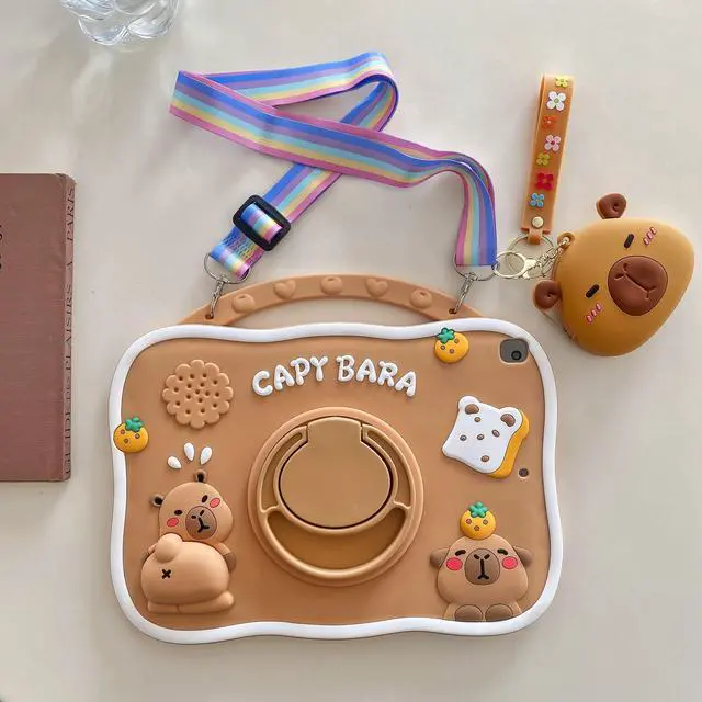 Make screen time more fun and functional with the YOUSIDUN Capybara Kids Case a super cute and durable case designed for the 10.2 -inch iPad (9th, 8th, and 7th Generation). Crafted from soft, shock-absorbing silicone, this case is built to handle everyday drops, bumps, and spills perfect for active kids. It features a 360° rotating kickstand for hands-free viewing, making it ideal for watching shows, drawing, or reading. Designed with kids in mind, the case includes an easy-to-hold handle and a removable, adjustable shoulder strap, so your child can carry their iPad to school, road trips, or anywhere on the go.