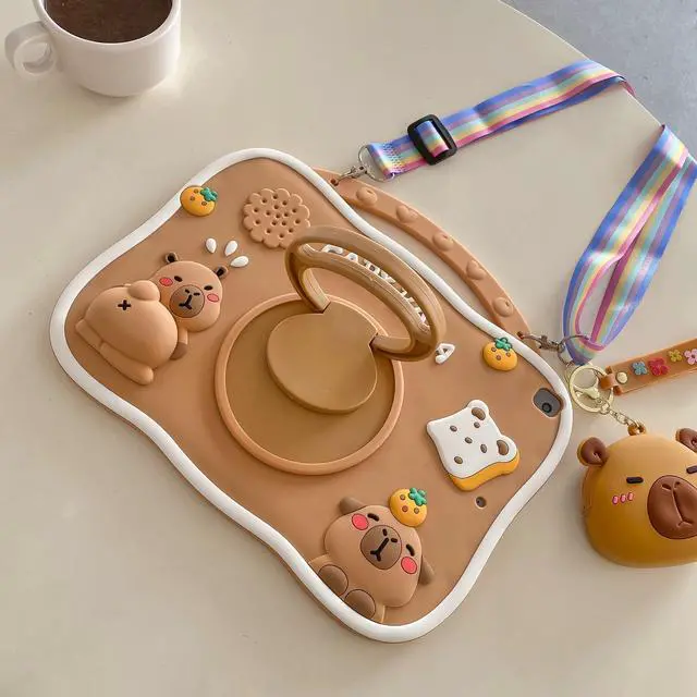 What truly makes this case stand out is the adorable 3D capybara design, complete with a detachable zippered pouch perfect for storing headphones, coins, charging cables, or other small items. It's more than just a case its a playful companion and a thoughtful gift idea. Whether youre shopping for a capybara iPad case, a fun iPad 9th generation case for kids, or a gift-worthy option that blends cuteness with protection, this one checks every box!