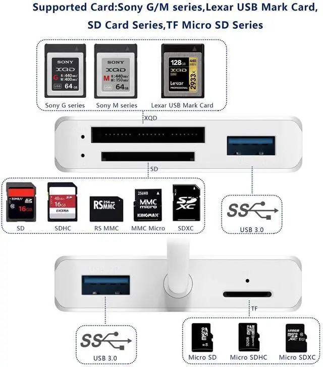 Designed for XQD cards, Perfect support XQD (Sony G/M series USB mark xqd cards, Lexar 2933x Lexar 1400x USB mark xqd)