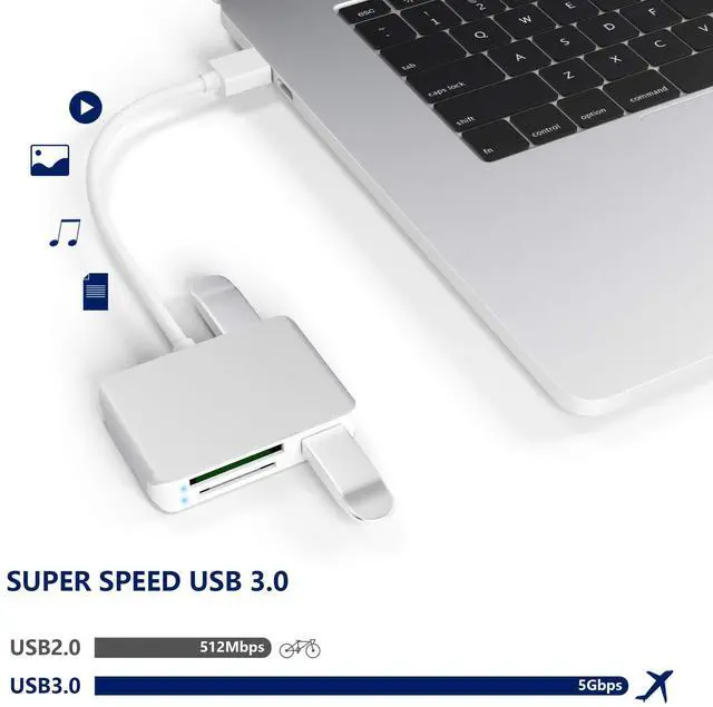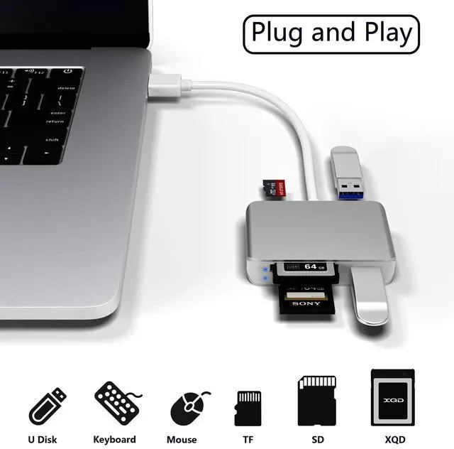 1 x USB 3.0 SD/TF/XQD Card Reader with Dual USB 3.0 Fast Data Transfer