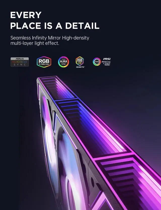 Infinity Mirror & ARGB Magic, Simplified Say goodbye to patchy, uneven RGB. DAWNs unique ARGB layout floods your case with smooth, uniform lightno more blotchy effects. Sync flawlessly with ASUS Aura, GIGABYTE RGB Fusion, and MSI Mystic Lighteven if youre new to RGB, youll nail a cohesive, jaw-dropping glow in minutes. Your rig, your vibe, effortless.